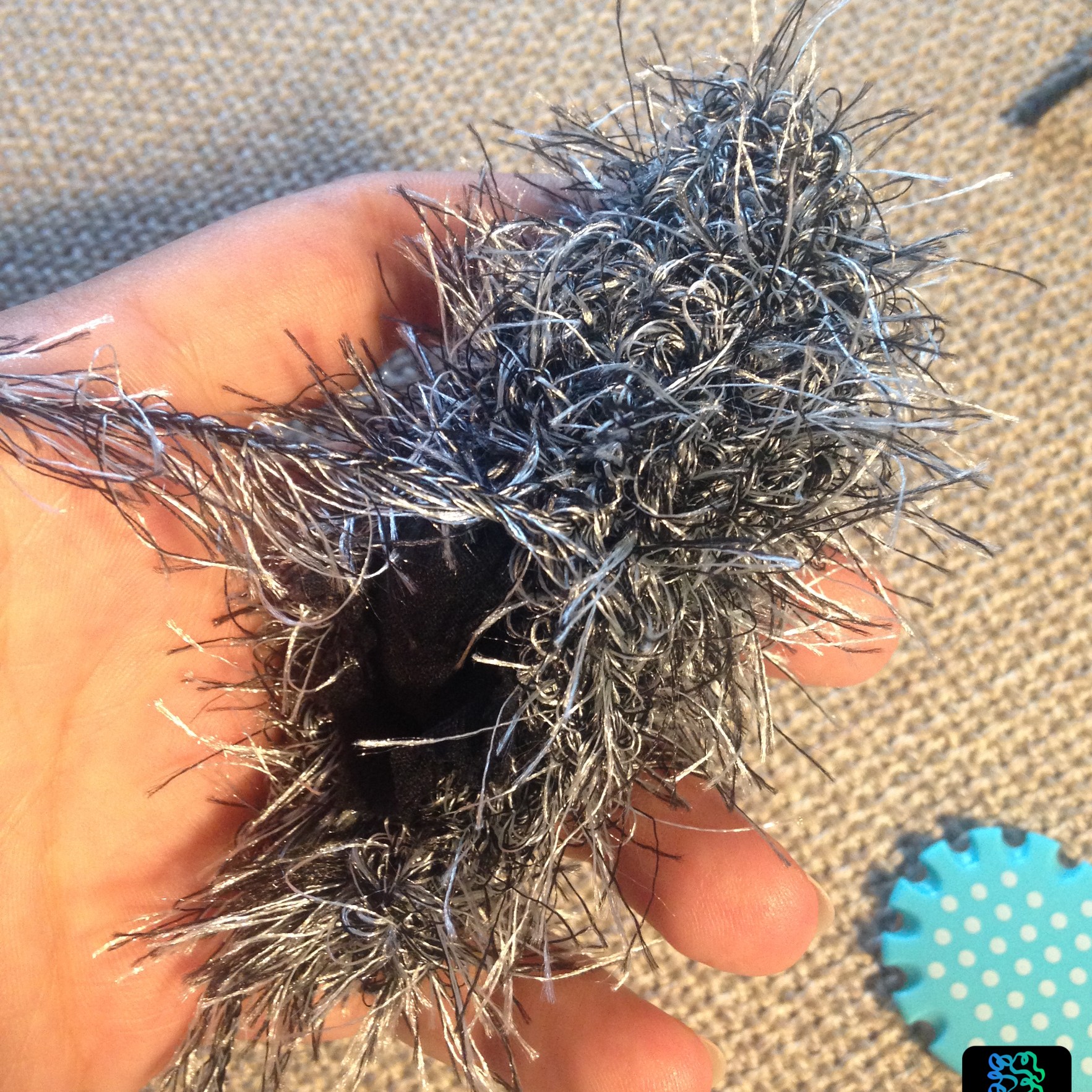 Motiviert durch den #PaillettenPerlenPlunderFAL des Frickelcasts habe ich meinen Wollberg nach Absurditäten außerhalb meiner Komfortzone durchsucht. Das Ergebnis davon und anschließender Ideenfindung ist mein „Sitting Bunny“. Ein Plüschtier gestrickt aus einem Synthetikgarn, das verstrickt zu einem plüschartigen Gefüge wird. Ganz schön haarige Sache!