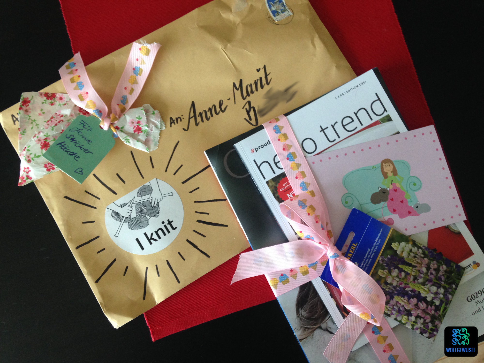 Ich habe bei der Linkparty „Liebste Maschen“, organisiert von Fannie (yarnaroundtehworld), im Mai mit meinem Beitrag zu den Frühlingserwachen-Socken die monatliche Verlosung gewonnen und durfte so eine liebevoll gestaltete Sendung inkl. per Handlettering verzierten Umschlag freuen. Da war das hallo trend-Magazin von Schachenmayr enthalten. Das mit dem tollen gehäkelten Bulli. Aber naja, Häkeln und so… außerdem noch zwei Einzelanleitungen für Mützen. Und da nicht nur die Verpackung schick war, sondern auch der Inhalt kam es noch ein paar schöne Kleinigkeiten als Beigabe. Vielen Dank, liebe Fannie!