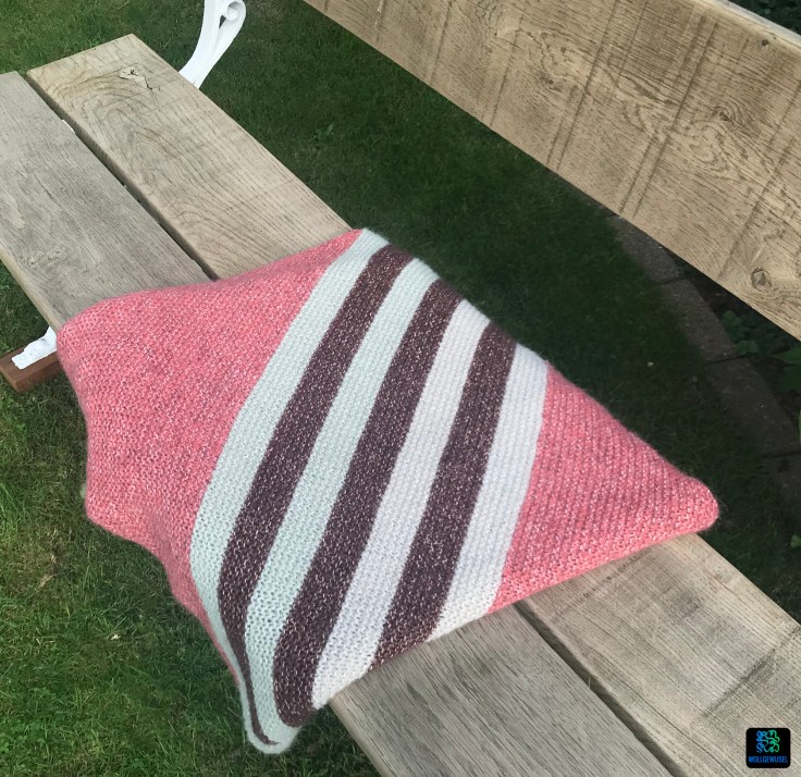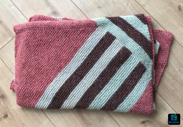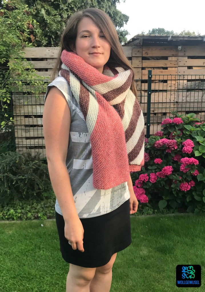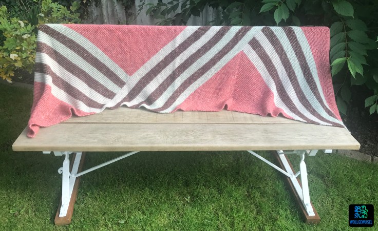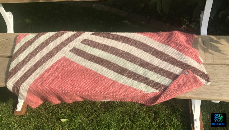 Während des Strickens greift die „Nur noch ein Streifen!“-Motivation und man kommt aufgrund der Nadelstärke zügig voran. Ich muss zugeben, beim ersten Ausmessen nach Fertigstellung war ich etwas überrascht ob der erreichten Länge. Aber ich will mich nicht beschweren.