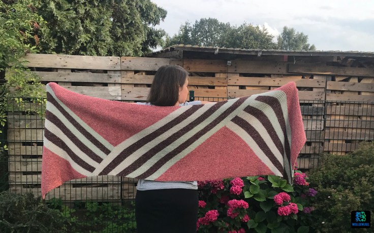 Wobei ich sagen muss, ich habe nach dem letzten Schal tatsächlich einen Sommerpulli angeschlagen und der Körper ist auch fertig. Dann gab es einige Komplikationen und es gab einige Entscheidungen zu treffen (mehr dazu im letzten Monatsrückblick). Deshalb und weil ich etwas simples zum Mitnehmen und Nebenbeistricken brauchte, habe ich dann den Ribbon Wrap (Anleitung bei ravelry) angeschlagen. Das Garn lag bereits bereit. Und so kam eins zum anderen und zack ist das riesige Ding fertig.