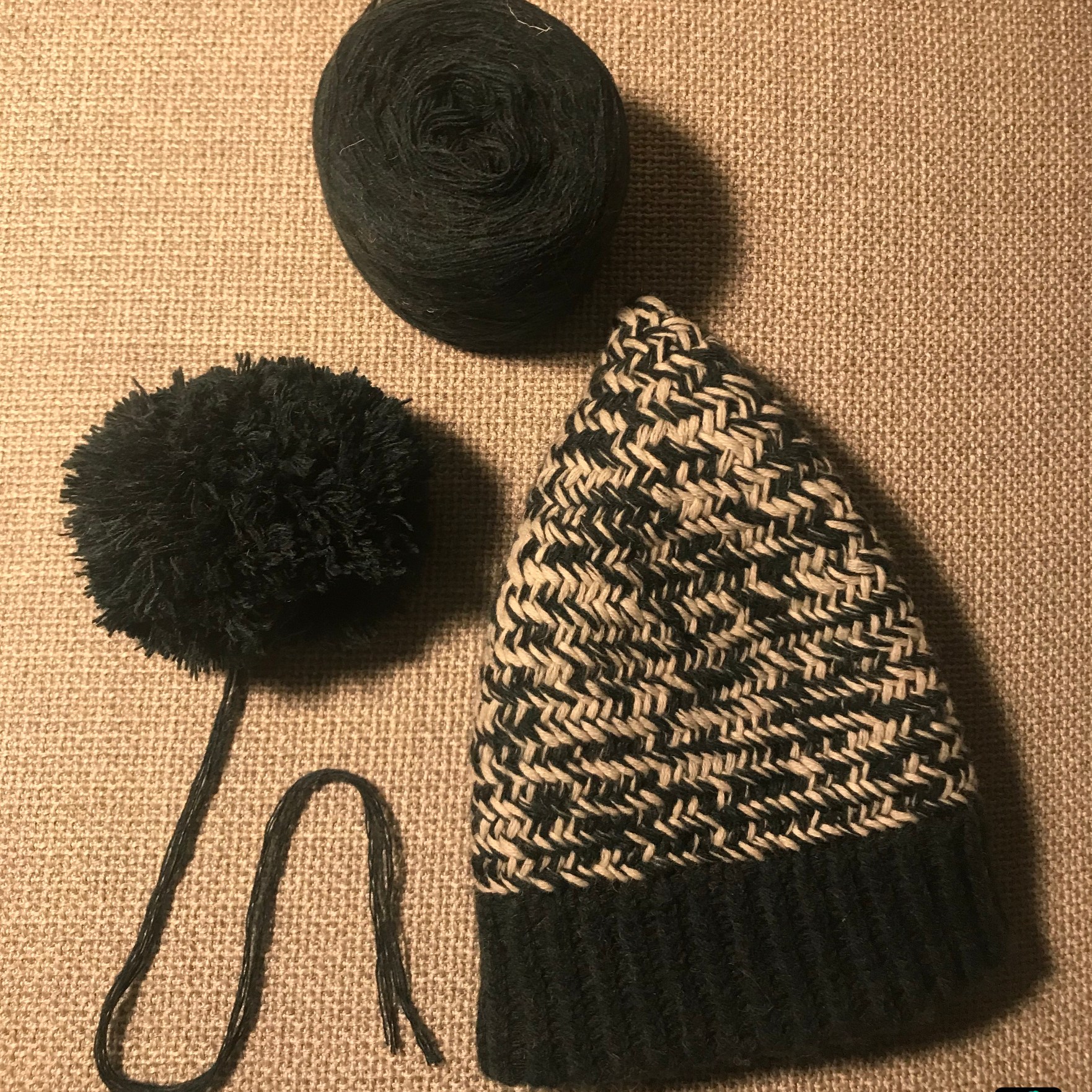 Bommelmütze im Fischgrätmuster