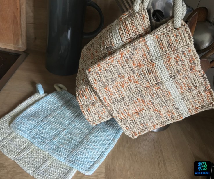 Nachdem ich mein zweites Paar an meine Mutter verschenkt hatte, rief ein anderer Herzensmensch „Oh, die sind ja schön! Genau solche hätt ich auch gern!“. Zu dem Zeitpunkt hatte ich allerdings genug von Topflappen :D Aber in meinem Urlaub im August hat es mich dann doch gepackt und ich habe die Baumwolle wieder ausgepackt.