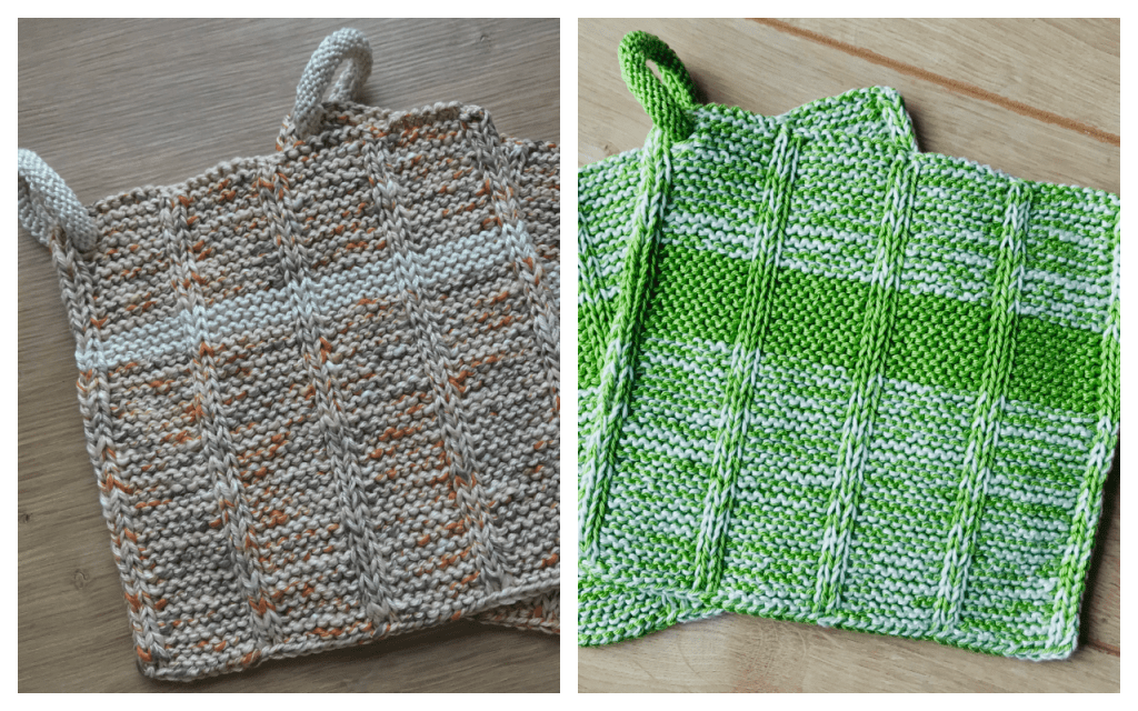Es war mal wieder Zeit zum „Kringeln“! So sind zwei neue Paare Topflappen nach der Anleitung „Baker’s Twine“ von Ducathi entstanden.