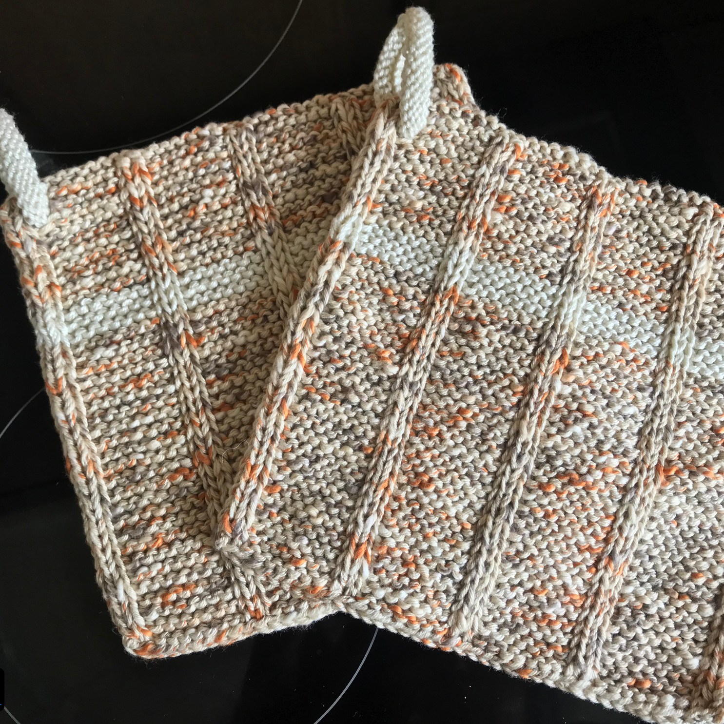 Weiterhin auf den Nadeln ist mein Solaris von Melanie Berg aka Mairlynd (Ravelry-Link). Hier bin ich aber auch ein ganzes Stück voran gekommen. Ich habe noch etwas die Hälfte des zweiten Strangs der Hauptfarbe (Garn: Luna von Wollfaktor) und nach einem grad gefühlt ewigen Teil einfarbig kraus rechts kommt dann der finale Musterstreifen. Da freue ich mich drauf.