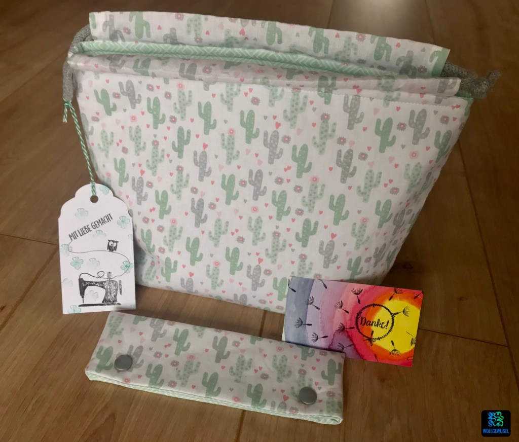 Ich habe mir eine Projekttasche bei Lauter Nette Saechala (Etsy-Shop) bestellt. Ich bin über den Maschenjedöns-Podcast darauf aufmerksam geworden. Ich habe mich für ein Set aus Projekttasche und Nadelgarage enthalten. Die Tasche reicht für ein Socken- oder ein nicht zu großes Tuchprojekt. Zwei Stränge sollten auf jeden Fall reinpassen. Die Qualität der Taschen hat mich überzeugt, der Kontakt war nett und es war mit Liebe verpackt. Versendet wird portofrei und auch insgesamt, sind die schönen Taschen vergleichsweise günstig. Ich habe mich sehr über diesen kleinen Glücksgriff gefreut.