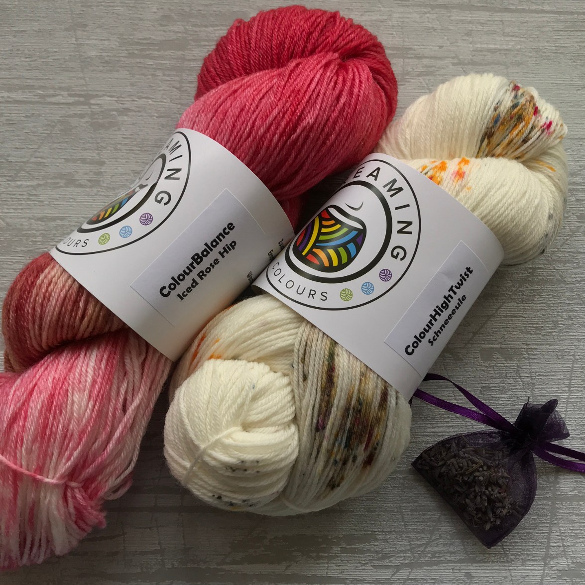 Und als letztes bin ich beim neu eingeführten ColourDay bei ScreamingColours schwach geworden. Da gab es ein Set aus einem Strang Merino Hightwist und einem plastikfreien (Socken-)Garn. In diesem Fall Merino mit 40% Tencel. Ich weiß nicht, ob Steffi es irgendwo geschrieben hat, aber ich meine die Basis ist die Balance von Atelier Zitron. Die passt von der Zusammensetzung und hat sich auf dem Markt ja schon bewehrt. Die Färbungen sind beim Kauf nicht bekannt, aber es gibt zwei Inspirationsbilder. Und weil die mir dieses Mal si gut gefallen haben, sind die beiden Stränge hier eingezogen. Ich bin gespannt aufs Verstricken.