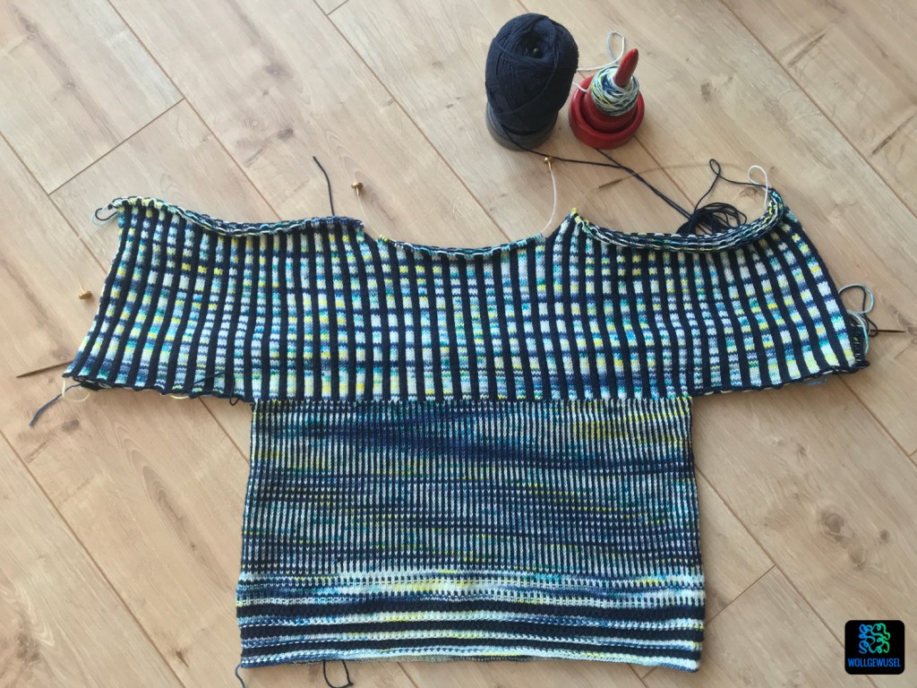 Auf den Nadeln habe ich weiterhin meinen gestreiften Pullover aus der DesignerKnitting 03/2020.
