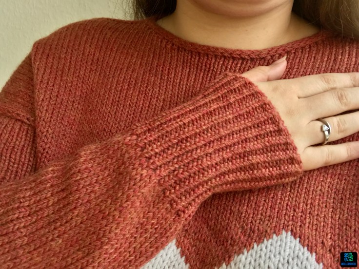 Die Ärmel habe ich natürlich wieder um gefühlte 15cm verlängert. Beim Titelmodel in der Anleitung enden die Ärmel noch vor dem Handgelenk. Wer trägt den sowas…? Tz.
