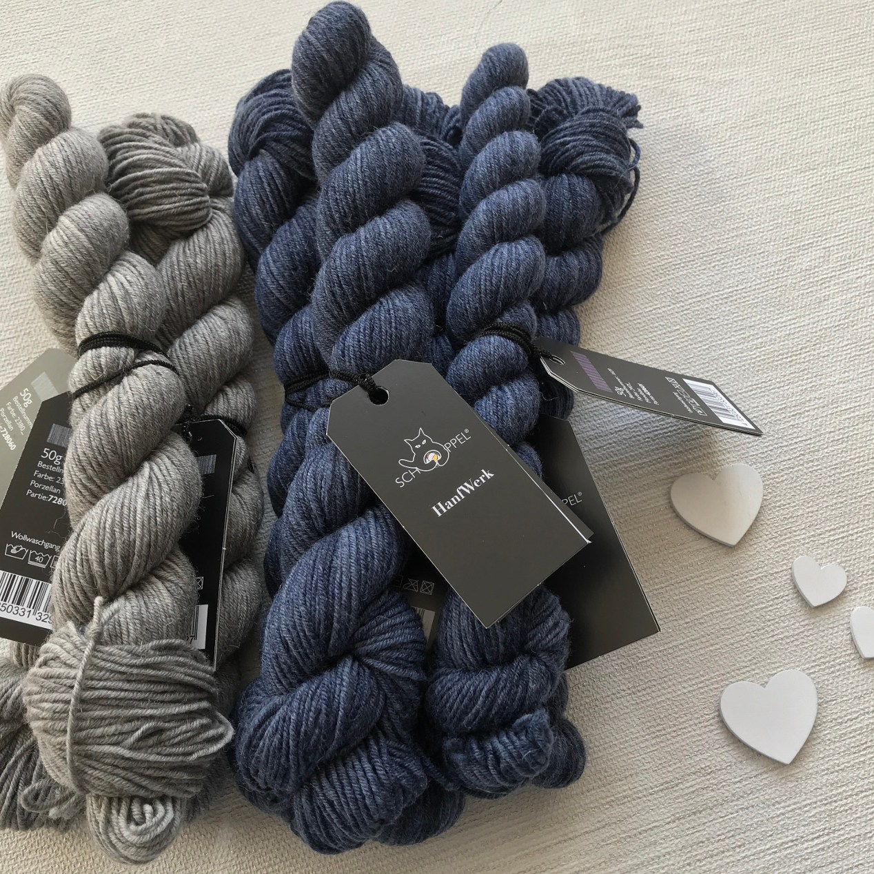 Natürlich durften die Nadelspiele von der Deichqueen nicht alleine reisen. Ich habe mir außerdem 400g HanfWerk von Schoppel bestellt. Auf die Qualität war ich sehr gespannt. Dabei handelt es sich um Merinogarn mit einer Hanfbeimischung mit 150m/50g. Das Garn ist weich und gleichzeitig trocken und griffig. Ganz toll. Ich habe ein rauchiges Blau und ein Mittelgrau gewählt. Daraus möchte ich mir (irgendwann) ein großes kuscheliges Tuch für den Winter stricken, dass ich mit vielem aus meinem Kleiderschrank kombinieren kann.