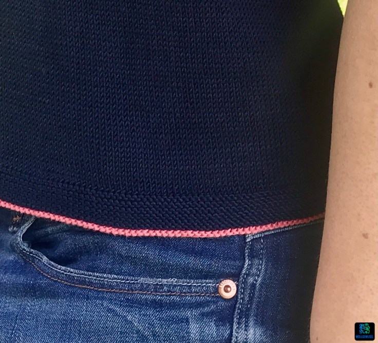 Leider hat sich mein fertiges Top nach der ersten Wäsche anders verhalten als durch die Maschenprobe prognostiziert. Mir fehlten „plötzlich“ einige Zentimeter Länge, um mich vollständig wohlzufühlen. Zur Zeit ist es nämlich bauchfrei, wenn man die Arme hebt. :D