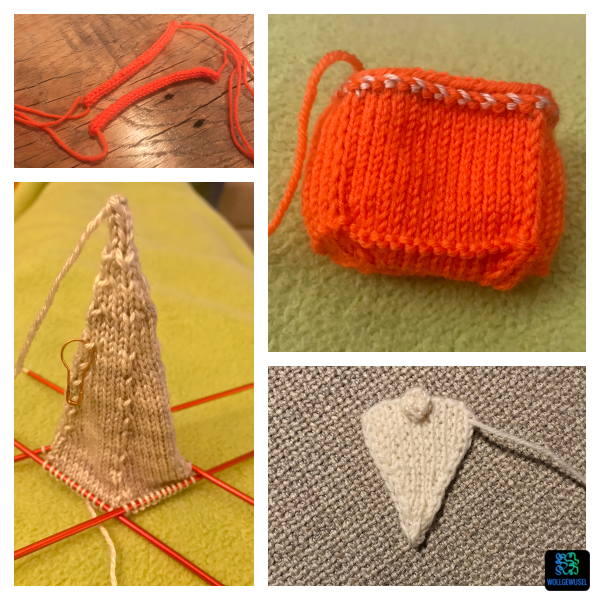 So entstand nach und nach das neue Gnom-Design „Leave Gnome Stone Unturned“ von Imagined Landscapes auf meinen Nadeln. Und der kleine Kerl gefällt mir wieder wirklich gut. Wie du auf den Bilder sehen kannst, sind es dieses Mal eigentlich gleich zwei, naja, sagen wir anderthalb Gnome. Der kleine Kerl, der gemütlich im Rucksack seines Kumpels Platz nimmt, war das Highlight dieser Anleitung. Denn wie du siehst ist der große Gnom an sich, bis auf auf die Tasche an der Mütze, sehr schlicht gehalten. So wurde eine Woche vor Weihnachten gerätselt, was denn noch kommen könnte, denn der Gnom war fertig, der Rucksack auch und alles war an seinem Plätzchen angenäht. Ja, und dann kam am nächsten Tag der nächste Teil, der wieder mit einer Mütze anfing… :D