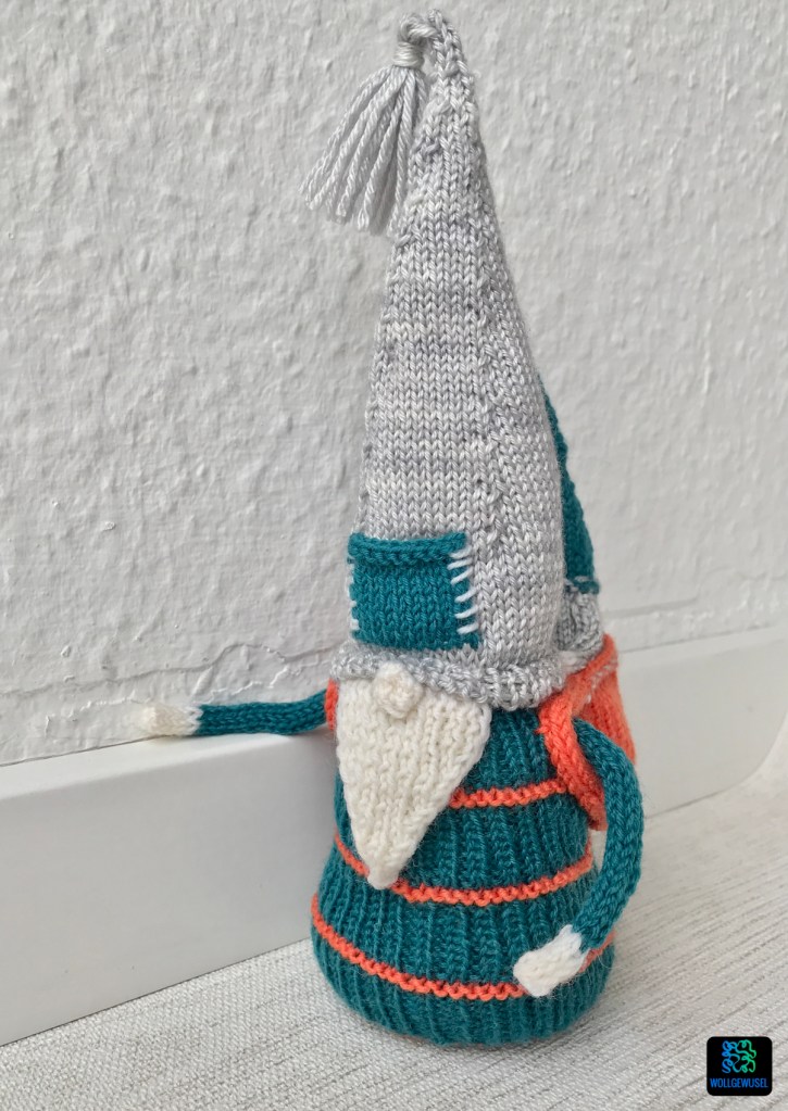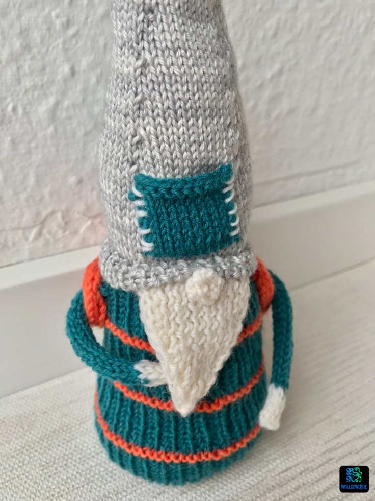 Im Großen und Ganzen hat es mir wieder Spaß gemacht und der Gnom gefällt mir. Aber ich habe wieder gemerkt, dass ich einfach ein ergebnisorientierter Stricker bin. Dieses häppchenweise Stricken ist nicht mein Ding. Ich stricke lieber in einem Stück runter. Auch wenn ich es zwischendurch weglegen muss, kann ich, soweit es die Zeit zulässt, stricken soweit ich komme. Und die Tage mit den Story-Stückchen habe ich auch eher als Bremsklotz empfunden. Eigentlich schade, denn da steckte ebenfalls unheimlich viel Liebe und Mühe drin! Insgesamt hat die Designerin das alles ganz wunderbar und liebevoll aufbereitet. Da kann man wirklich nicht meckern, aber es ist für mich vielleicht doch besser, wenn ich mir im Nachgang die Anleitung hole, wenn alles auf einmal verfügbar ist (ohne Story dann glaube ich…).