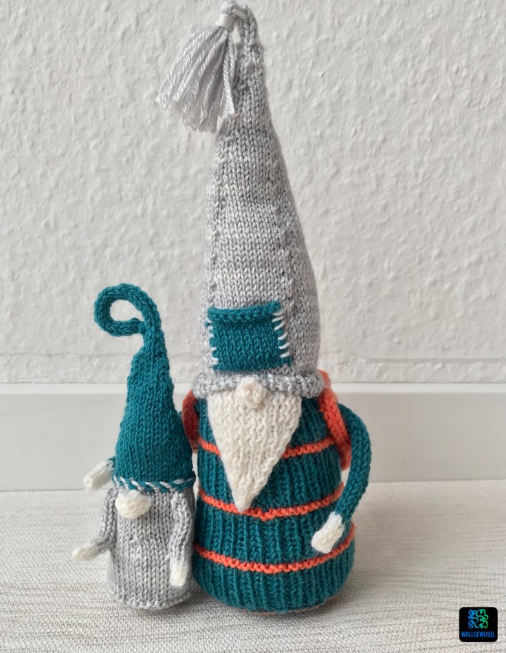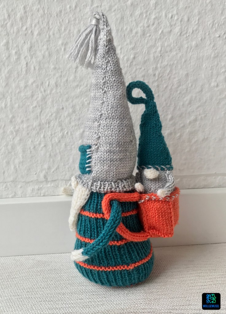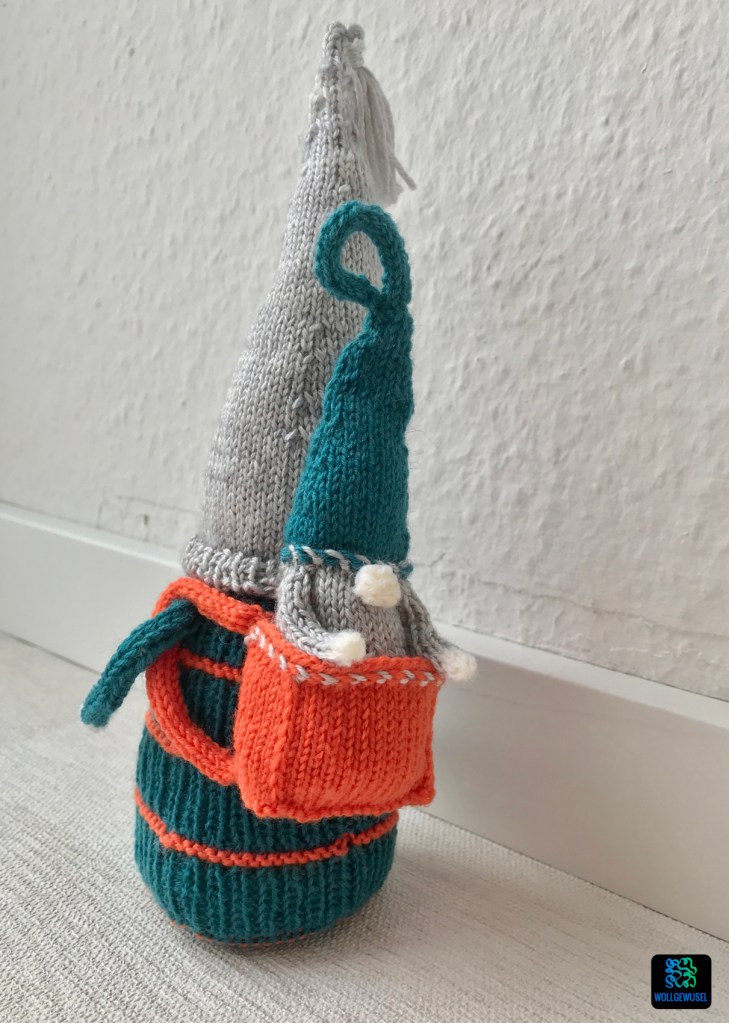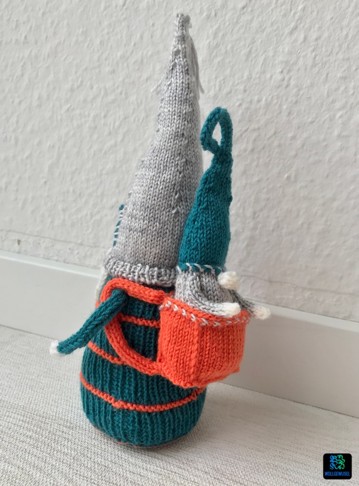 Die Idee mit dem Rücksack finde ich richtig süß. Und auch das dieser Gnom wieder einen Bart hat finde ich gut. Einige der letzten Designs haben nämlich auf diesen verzichtet. Mit dem „Zweitgnom“ musste ich mich allerdings erst anfreunden. Auf Anraten des Strickmanns habe ich ihn dann aber doch einfach gestrickt und naja, irgendwie finde ich es jetzt ja doch auch ganz knuffig. Mir fehlte aber auch einfach eine sinnvolle Idee, wie man den Rucksack anderweitig hätte befüllen könnte, da es nicht zu schwer sein darf. Sonst fällt der Gnom nämlich einfach nach hinten um. :D