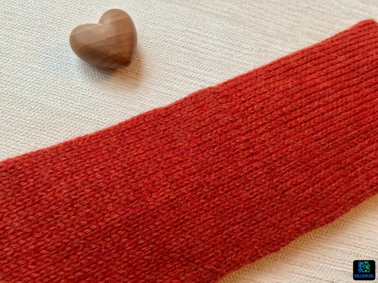 Verbraucht habe ich für das Stirnband bei einem Kopfumfang von 58cm nun 66g Garn. Schlussendlich etwas weniger, weil ich ja wieder ein paar Runden rausgetrennt habe.