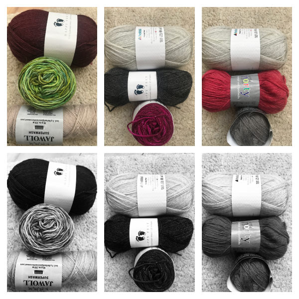 Geworden ist es nun also als Hauptfarbe ein hellgraues Sockengarn von Hobbii, die Happy Feet Solid, die es glaube ich nicht mehr gibt. Und als Kontrastfarben zwei Mal Discountersockenwolle. Nämlich die rote als Rest von der ersten Runde (IpomoeaSocks) und ein dunkelgraues Garn, aus dem ich meine PillaSocks als Teststrick für Sockshype gestrickt hatte. Alles keine superflauschigen Luxusgarne, wobei die Hobbii-Wolle extrem weich ist für ein Nicht-Merino-Garn. Aber dadurch, dass beim Colourwork quasi immer zwei Lagen Wolle (Gestrick+Spannfäden) entstehen, sind die fertigen Socken so weich und warm. Super schön.
