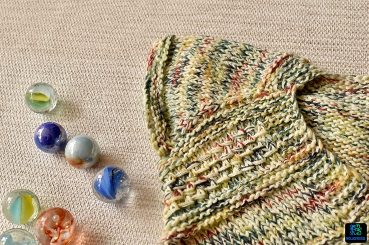 Als ich die Jacke das erste Mal gestrickt habe (hier gehts zum Projektbeitrag), habe ich aufgrund der Größe etwas mehr Wolle benötigt und war somit nicht ganz so frei in der Garnwahl aus dem Wollberg. Nun konnte ich ja aber aus dem Vollen schöpfen, inkl. etwas größerer Reste. Und so ist meine Wahl auf ein gefachtes Handstrickgarn gefallen, welches ich vor Jahren bereits einmal für ein Tuch verwendet habe, nämlich für meinen Touchstone. Da war aber einiges übrig geblieben.