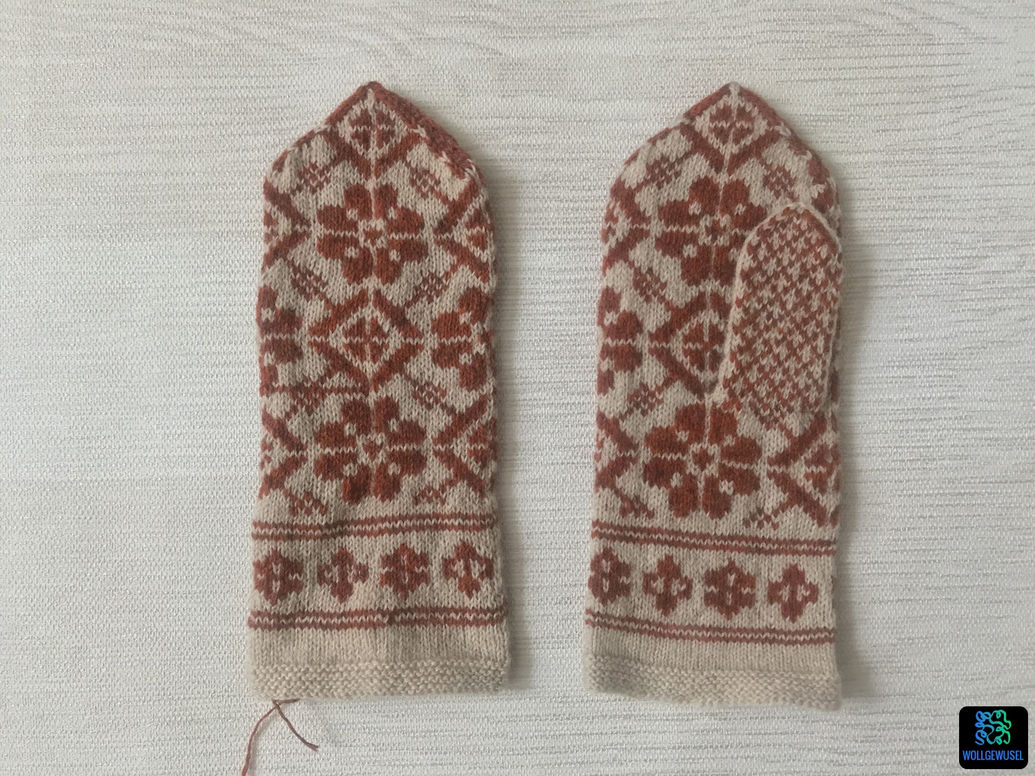 Ich habe meine Wintersonne-Fäustlinge (ravelry-Link) aus dem Buch Lettisch Stricken vom Stiebner Verlag wieder hervorgekramt! Da war der erste Fäustling im Juni fertig geworden und aber beim besten Willen zu klein für mich. Im Juni-Rückblick hatte ich darüber berichtet.