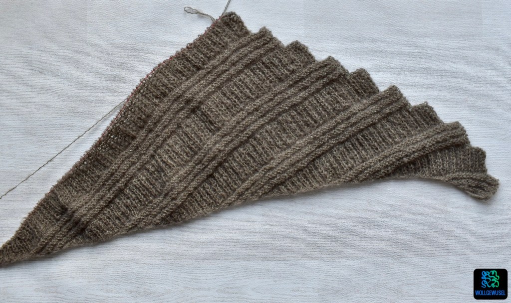 Leider habe ich noch keine Fotos vom fertigen Schal, da er auf den letzten Drücker fertig, gewaschen und gleich übergeben wurde.
