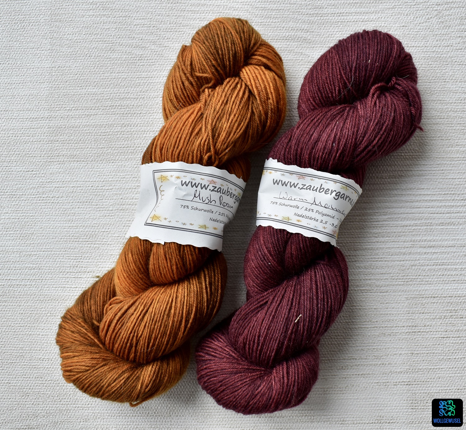 Außerdem habe ich bei Zaubergarne zwei schöne semisolide Stränge Sockenwolle erworben. Schöne satte Farben in gedeckten Tönen. Das traf genau meinen derzeitigen Geschmack.