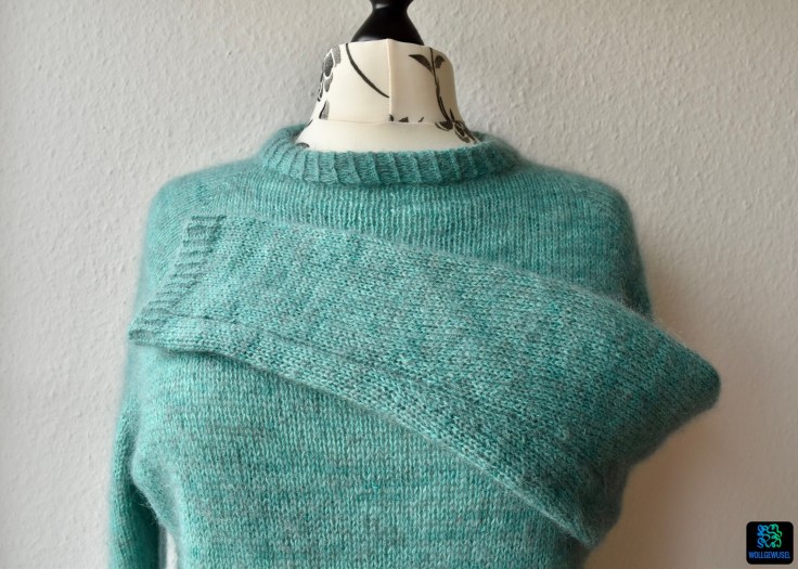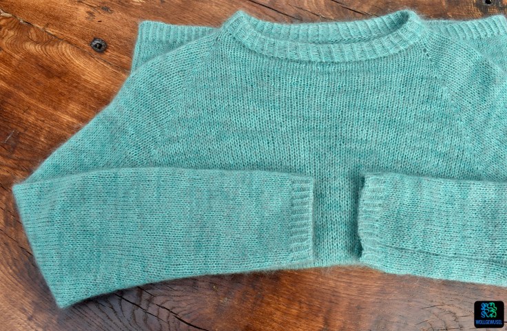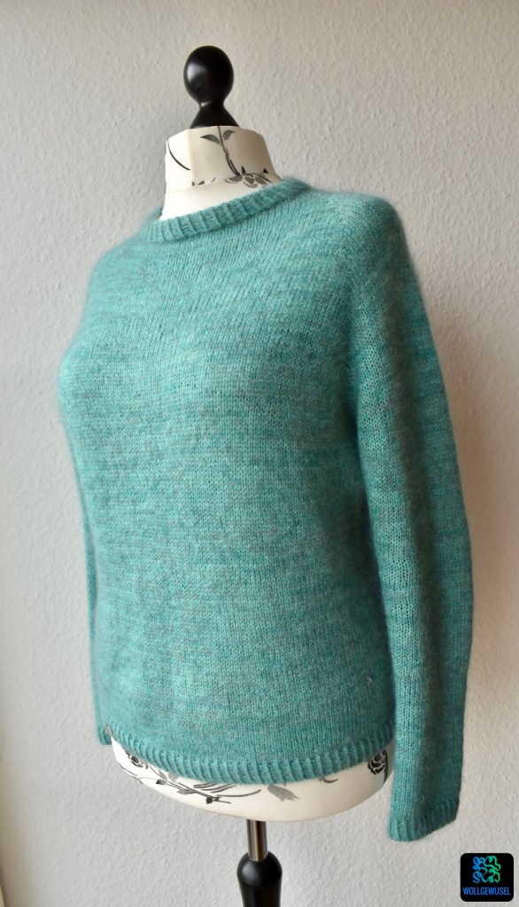 Nachdem mir mein Probeexemplar bereits gut gefiel, ist nun auch mein zweiter Pullover nach der Anleitung Kukka Sweater von rosa p. (ravelry-Link) fertig geworden: eine fluffig leichte, türkise Wolke! :)