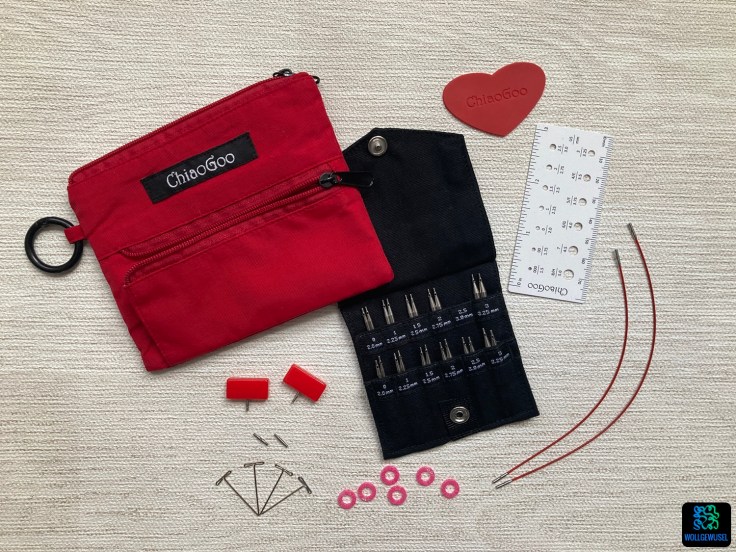 Außerdem habe ich mir nach langem Überlegen ein neues Nadelset gekauft. So häufig fehlte mir dann eben doch die kleine Nadelstärke für kleine Umfänge. Meine Nadelsets von Addi und Pony kann ich nur mit Magic Loop für Ärmel und sowas verwenden. Addi beginnt außerdem erst ab 3,5mm. Deshalb habe ich mir nun das Red Lace Shortie Set von ChiaoGoo gekauft.