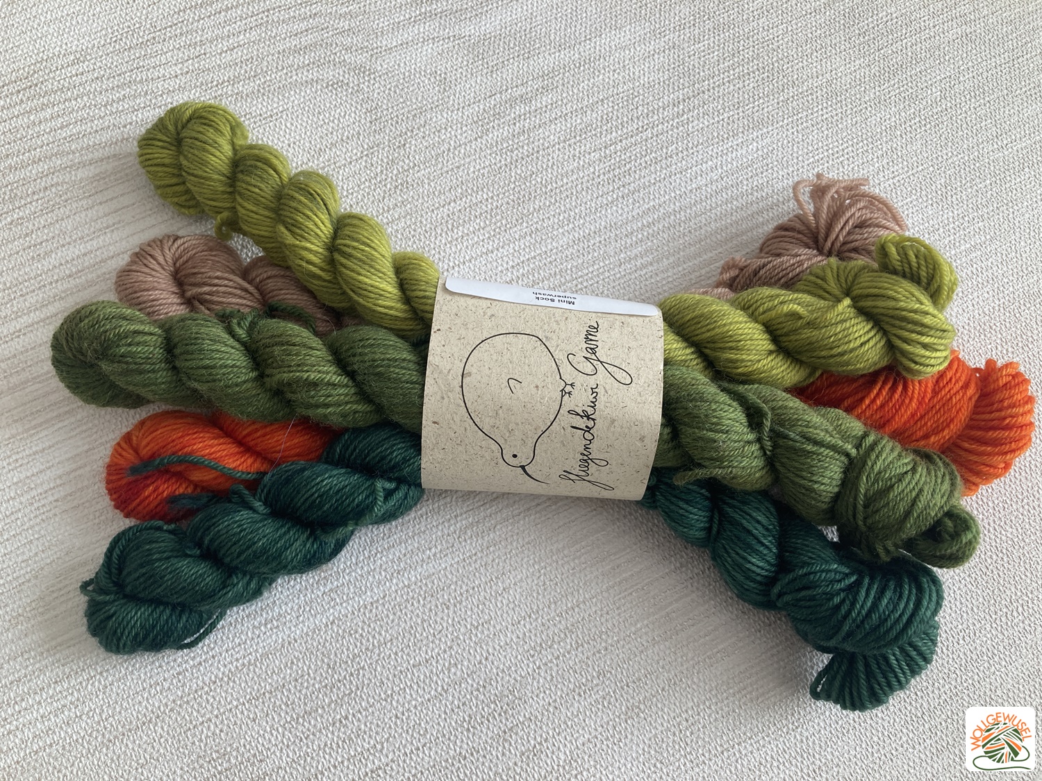 - Ein 5er-Set Minis Sockenwolle auch von fliegende Kiwi in tollen Herbstfarben.