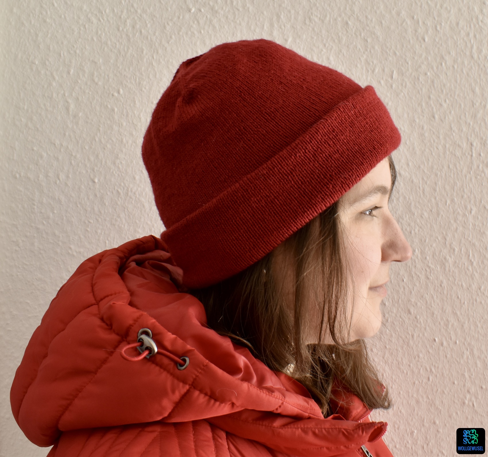 Ich hatte Anfang des Jahres bereits für meine Schwiegermutter einen Musselburgh Hat gestrickt. Die Mütze war wirklich schön geworden und auf Gefallen gestoßen. Sowohl bei mir als auch bei der Empfängerin. Außerdem hatte ich noch einen wunderschönen Strang kräftig rote Sockenwolle im Wollberg, der mich schon länger anlächelte. So kam ich zu dem Gedanken, dass eine rote Mütze, passend zu meiner roten Winterjacke, eine tolle Idee wäre. Also habe ich die Anleitung für den Musselburgh Hat von Ysolda Teague (ravelry-Link) wieder hervorgekramt.