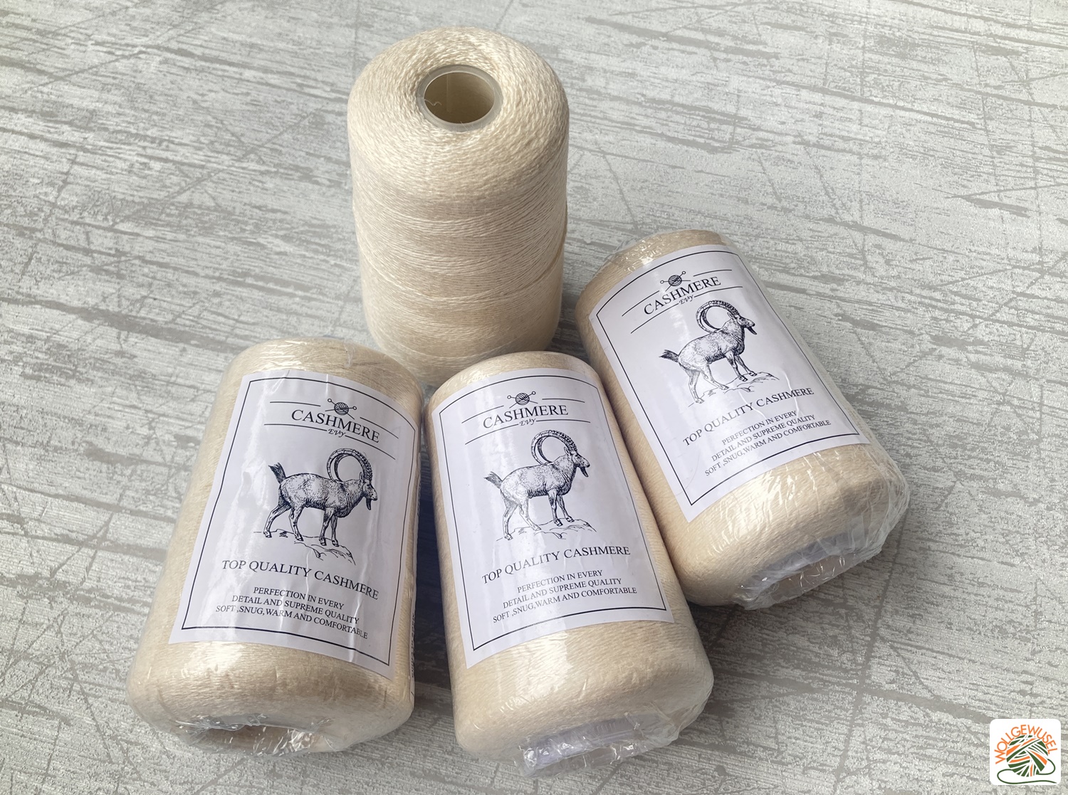Ich habe im Juni einen tollen Neuzugang unterschlagen. Ich habe schließlich von meinem Freund vier Konen Kaschmirgarn zum Geburtstag bekommen. Es ist unheimlich dünn mit 1100m auf 100g. Ich glaube ich möchte daraus ein luxuriöses Kuscheltuch machen. Ein Kolding oder sowas… Und in dem schlichten Naturton würde das glaube ich ein zeitloses Teil mit großem Kuschelfaktor werden. Das Garn hat eine Zusammensetzung von 85% Kaschmir und 15% Polyamid.