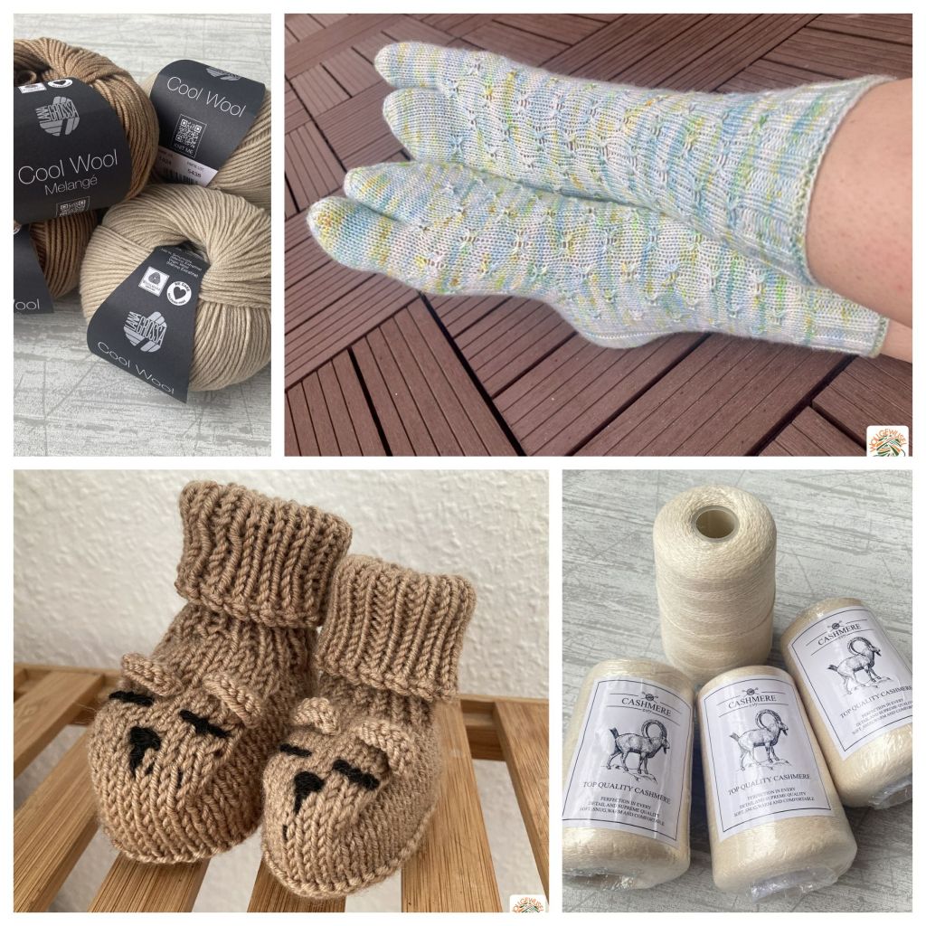 Außerdem sind diesen Monat nun zwei mal zwei Knäul der Lana Grossa Cool Wool Melange bei mir eingezogen. Zwei in mittelbraun, die ich jetzt für die Babyschuhe verwende und zwei in beige (Auch wenn das Etikett das Melange nicht ausweist. Keine Ahnung.) . Das Garn ist perfekt für Babysachen und wird so oder so Verwendung finden.