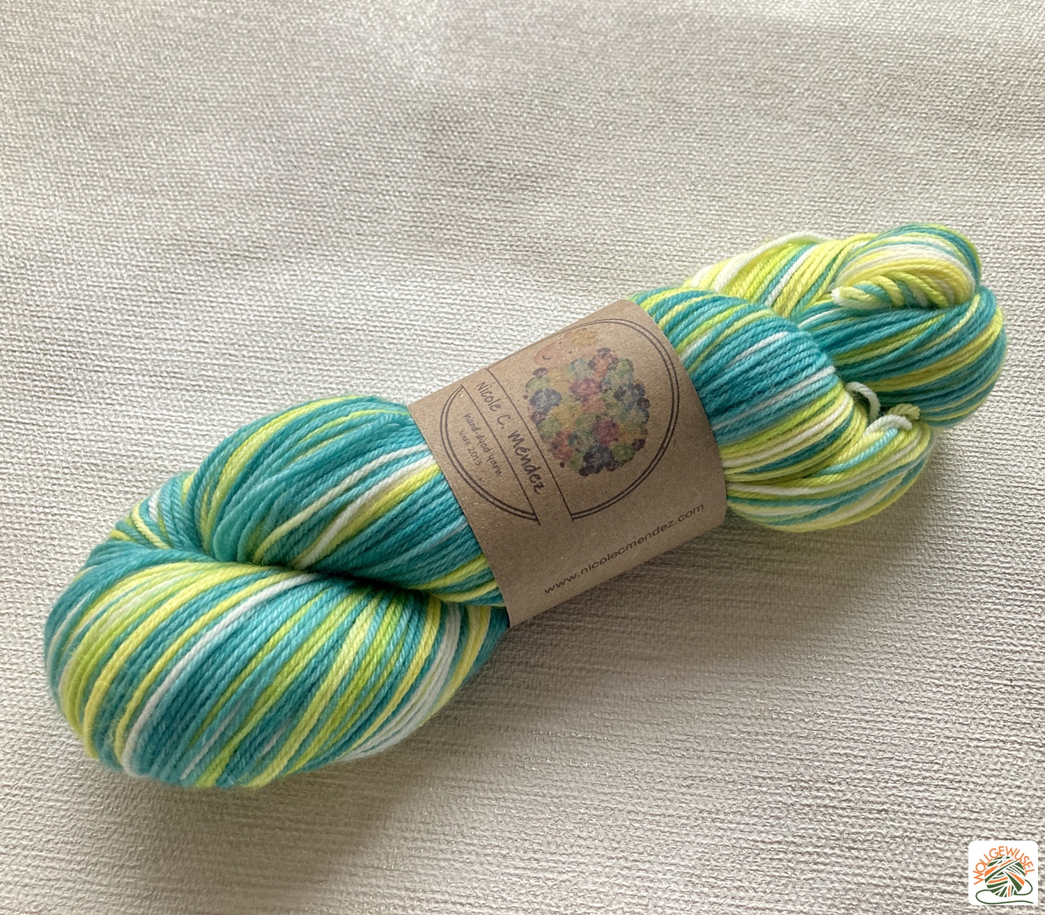 Zu dem einen Sockenwollstrang aus dem November kam sehr kurz danach noch ein weiterer. Gut, dass ich den Rest von einem Strang von Nicole C. Méndez grad beseitigt habe, da kann ich mir den Kauf eines weiteren gut rechtfertigen. ;) Gekauft habe ich einen Überraschungsstrang und bekommen habe ich die schöne Frühlingsfärbung Daisy auf der SoftSock-Base (80% Merino, 20% Polyamid).