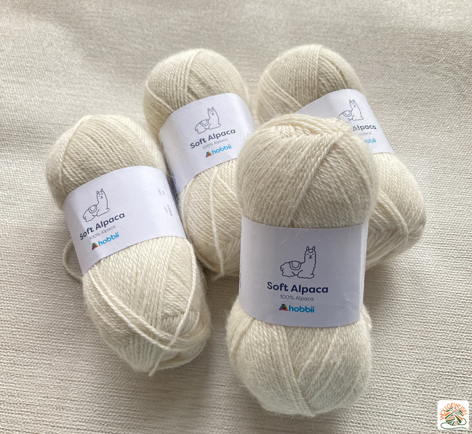 Außerdem sind vier Knäul Soft Alpaca von Hobbii für den Schal vom Mann hier eingezogen. Die Wahl ist auf Wollweiß gefallen und das reine Alpaka-Garn mit 165m/50g wird glaube ich ein tolles Ergebnis liefern.