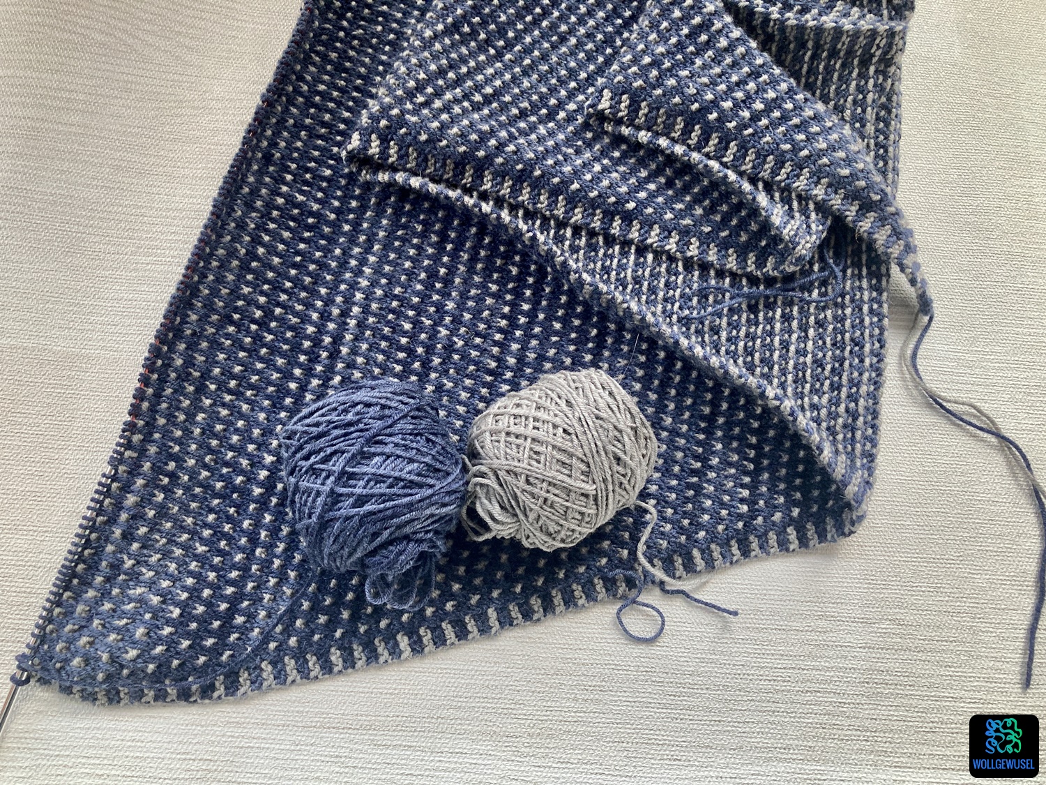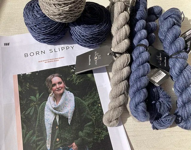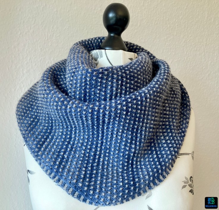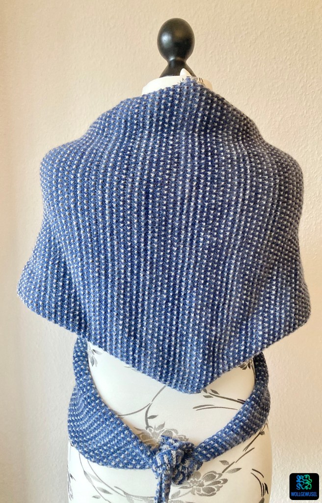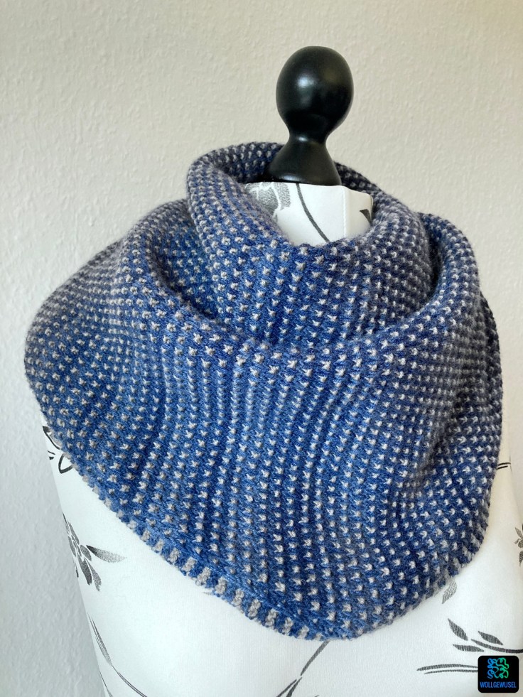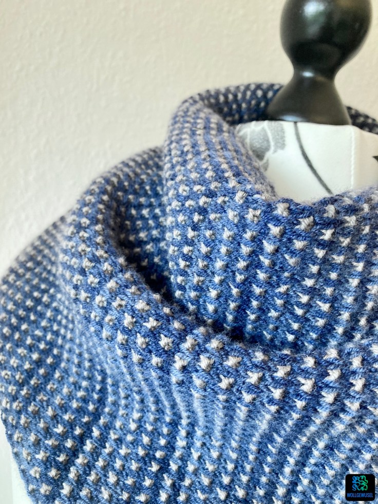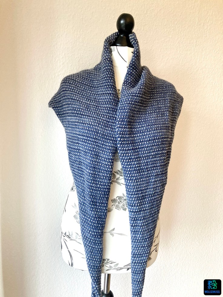 Ich habe einen bereits 2021 erworbenen Schatz aus meiner Wollberg verstrickt. Erworben hatte ich es beim Abverkauf der Deichqueen, ein Wollgeschäft an der Nordseeküste, welches zu dem Zeitpunkt leider den Betrueb aufgegeben hat. Gekauft hatte ich es tatsächlich mit dem Gedanken an ein kuscheliges Tuch, aber erste Recherchen hatten damals nicht zu einer Anleitung geführt und dann habe ich es aus den Augen verloren.