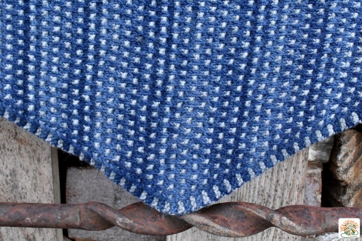 Wenn ich sagen müsste, was mir nicht gefällt an dem Tuch, wäre das einzige wohl folgendes. Der Rand aus krausrechten Rippen führt leider nicht dazu, dass das Tuch sich ganz glatt legt. Auch nach dem Waschen klappt diese Kante immer nach hinten um. So sieht man sie also im getragenen Zustand leider nie wirklich. Aber das ist Jammern auf hohem Niveau. Es ist ein wenig schade, weil ich mag die Kante, aber es stört auch nicht. Würde Sie nach vorne klappen, würde es mich mehr stören, und getragen ist es am Ende egal, ob das Tuch sich auf diese Weise eben doch ein wenig an den Rändern „einrollt“.