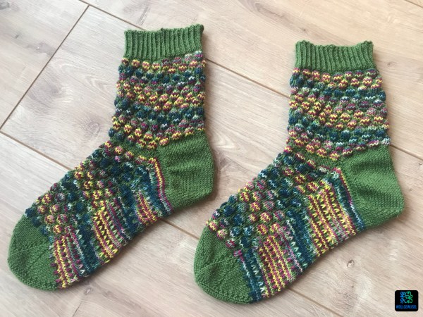 [Werbung: unbeauftragt]Ich habe mein zweites Paar Socken nach einer Anleitung aus dem Buch 52 Weeks of Socks beendet: die Socken Kaisla von Rachel Coopey. Das Sockendesign kommt mit einem breiten Rippenmuster auf dem Oberfuß und am Schaft daher, das unterbrochen wird von wiederkehrenden verkrusten Maschen und ein paar Löchern. Eine Zopfnadel wird dafür nicht benötigt,... Continue Reading →