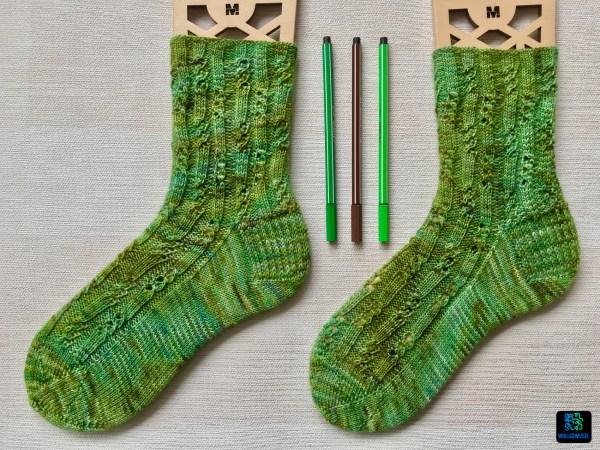 [Werbung: unbeauftragt]Ich habe mein zweites Paar Socken nach einer Anleitung aus dem Buch 52 Weeks of Socks beendet: die Socken Kaisla von Rachel Coopey. Das Sockendesign kommt mit einem breiten Rippenmuster auf dem Oberfuß und am Schaft daher, das unterbrochen wird von wiederkehrenden verkrusten Maschen und ein paar Löchern. Eine Zopfnadel wird dafür nicht benötigt,... Continue Reading →